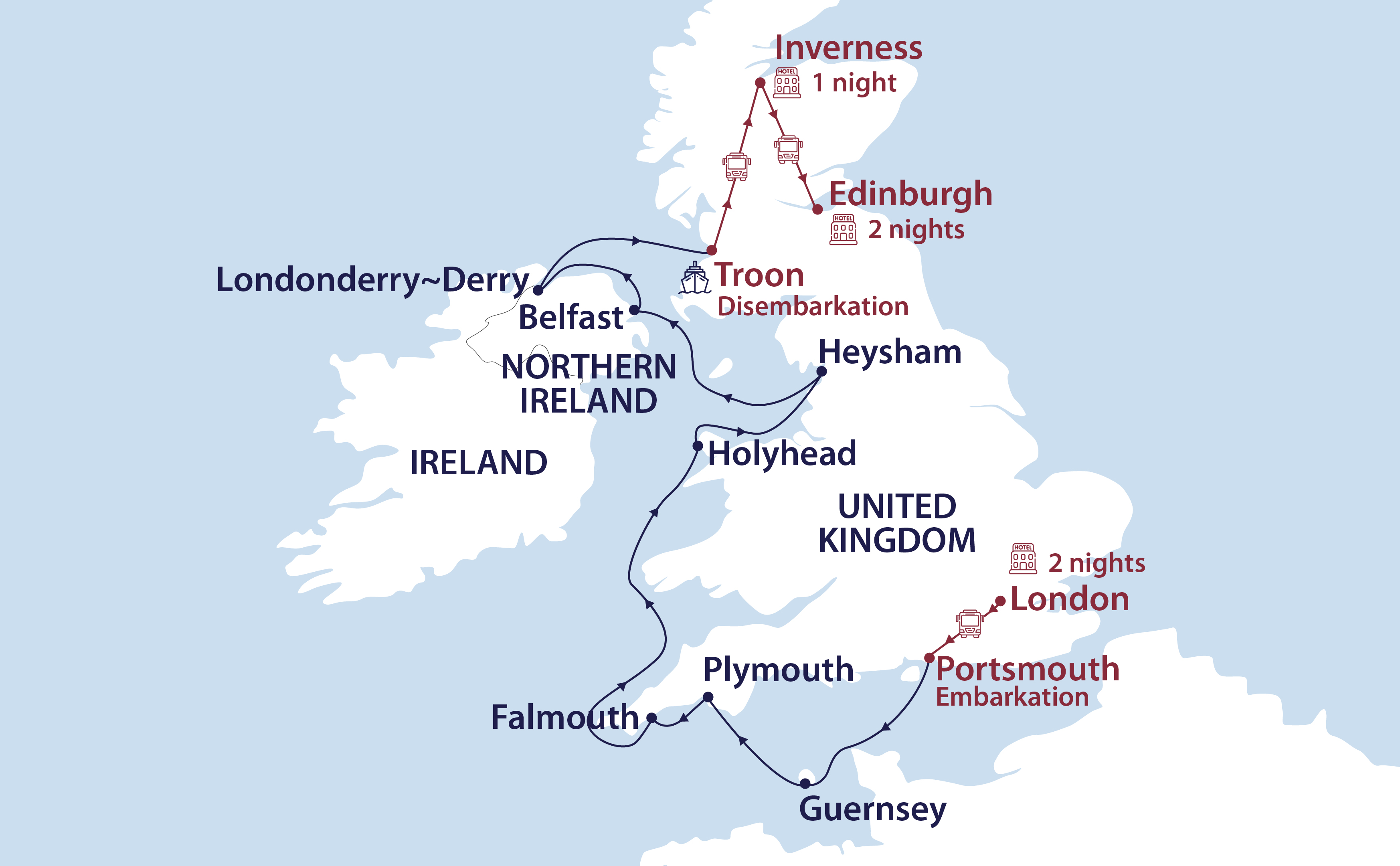 One night’s hotel accommodation, including breakfast, in Inverness on Day 12