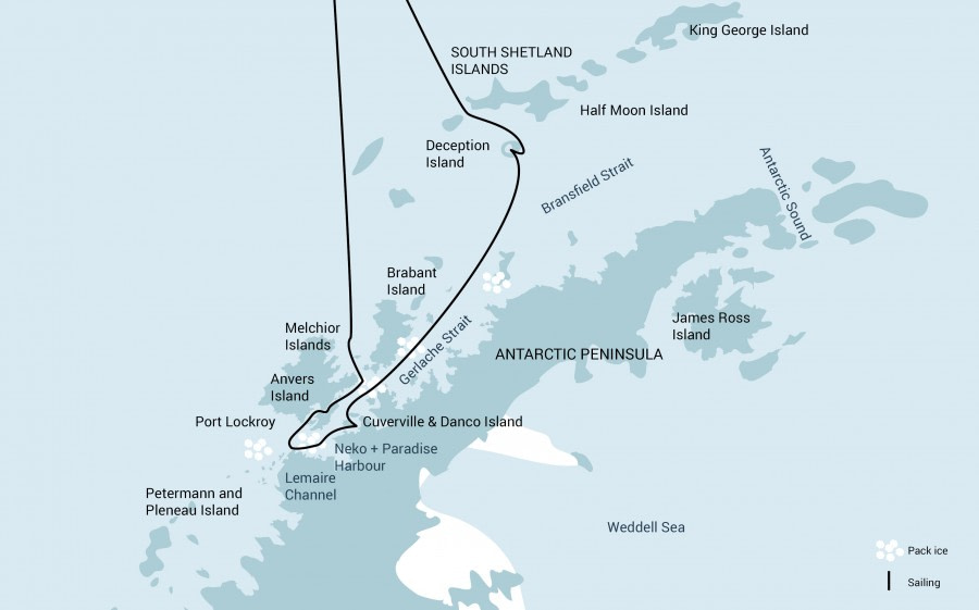 MS PlanciusReiseverlauf abhängig von Wetter- und Eislage. Beschriebene Naturerlebnisse/Tiersichtungen sind mögliche Ereignisse auf den Expeditionen und nicht garantiert.