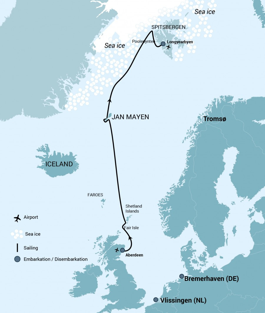 MS HondiusReiseverlauf abhängig von Wetter- und Eislage. Beschriebene Naturerlebnisse/Tiersichtungen sind mögliche Ereignisse auf den Expeditionen und nicht garantiert.