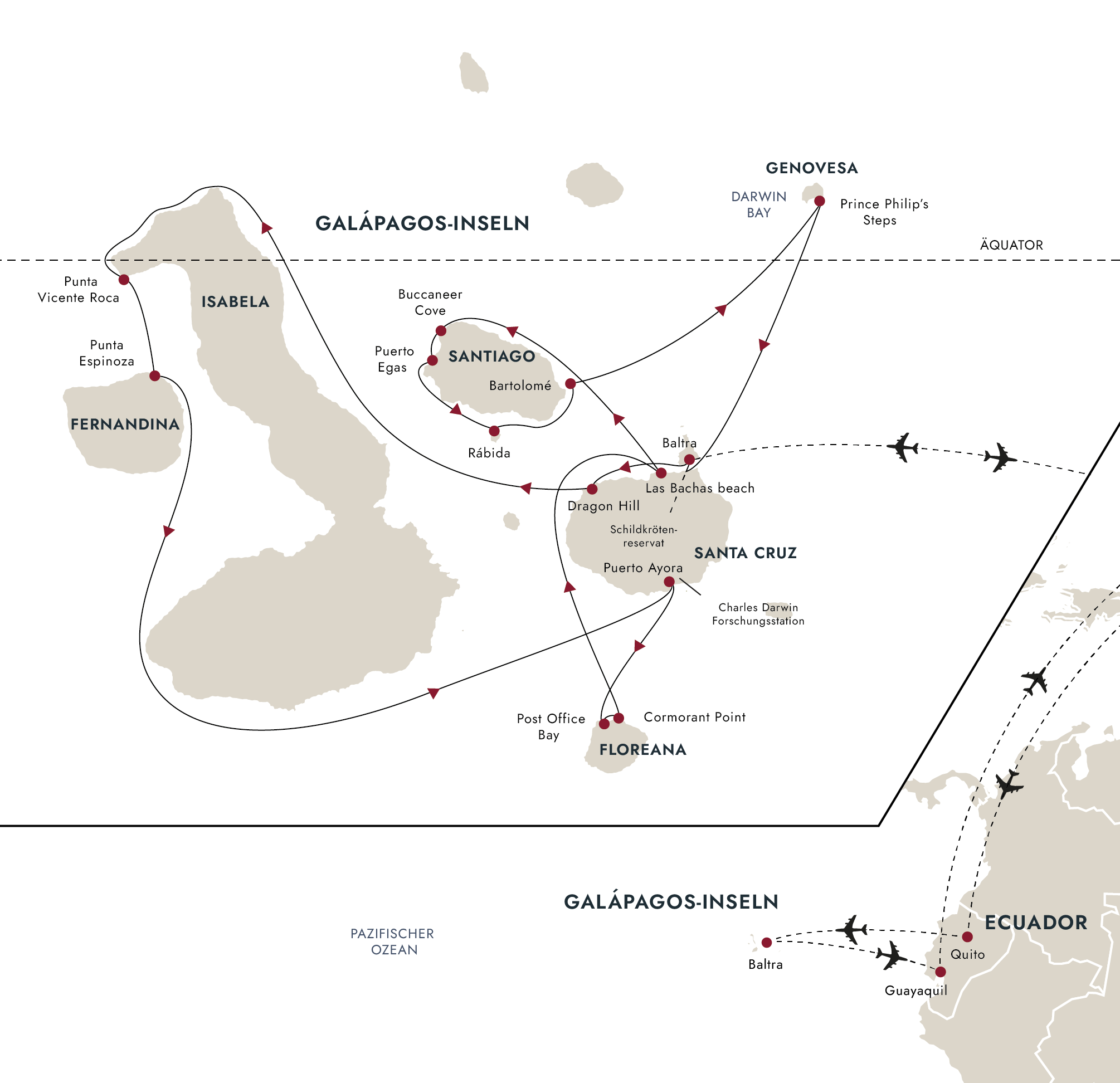 Ihr Flug von Baltra geht nach Guayaquil. Wenn Sie Ihre Expedition in Quito beenden möchten, informieren Sie bitte Ihren Buchungsagenten.