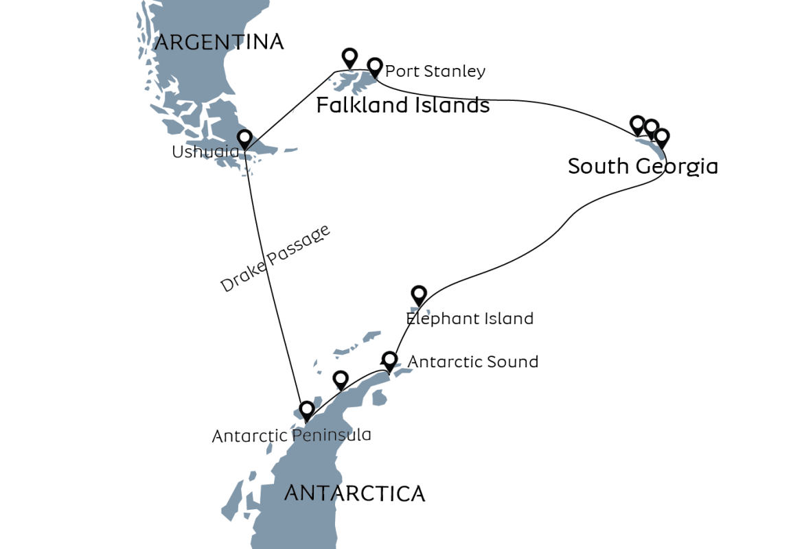 ÜBER DAS MEER ZU DEN FALKLANDINSELN Wir folgen den Meeresströmungen des Südatlantiks und steuern auf die selten besuchten Falklandinseln (Islas Malvinas) zu. Während die Ureinwohner von Feuerland, die Yaghan, die Inseln möglicherweise besucht haben, gab es auf den Falklandinseln (Malvinas) keine einheimische Bevölkerung, als die Europäer im frühen 16. Jahrhundert dort ankamen. Die Souveränität der Inseln ist seitdem umstritten, mit historischen Ansprüchen Spaniens, Frankreichs, Großbritanniens und Argentiniens; die Inseln wurden 1840 politisch als britische Kolonie gegründet. Die Spannungen führten 1982 zu einem Konflikt zwischen Großbritannien und Argentinien um die Inseln. Der Konflikt hatte nachhaltige Auswirkungen auf die Inseln – während er die dringend benötigte Entwicklungshilfe aus dem Vereinigten Königreich anregte, hinterließ er auch große Teile der Inseln stark vermint. Seit dem Konflikt haben sich die Inseln jedoch gut entwickelt und verkaufen lukrative Fischereirechte in ihren reichen Gewässern. Die Minenräumung wurde 2020 abgeschlossen und mit einem Fußballspiel auf dem letzten entminten Stück Land zwischen dem Gouverneur der Inseln und dem simbabwischen Minenräumungsteam, das die Falklandinseln zu seiner Heimat gemacht hat, gefeiert. Die Gewässer um die Falklandinseln gehören zu den fischreichsten der Welt. Riesige Wal-, Robben- und Pinguinpopulationen ernähren sich dort, wo die kalten antarktischen Gewässer auf die wärmeren Gewässer des Südatlantiks treffen. Halten Sie also Ihr Fernglas bereit! Oder schließen Sie sich den Dozenten des Expeditionsteams an, um mehr über die faszinierende Geschichte, Biologie und einzigartige Kultur der „Kelper“ (wie sich die Einheimischen selbst nennen) dieser Inseln zu erfahren.