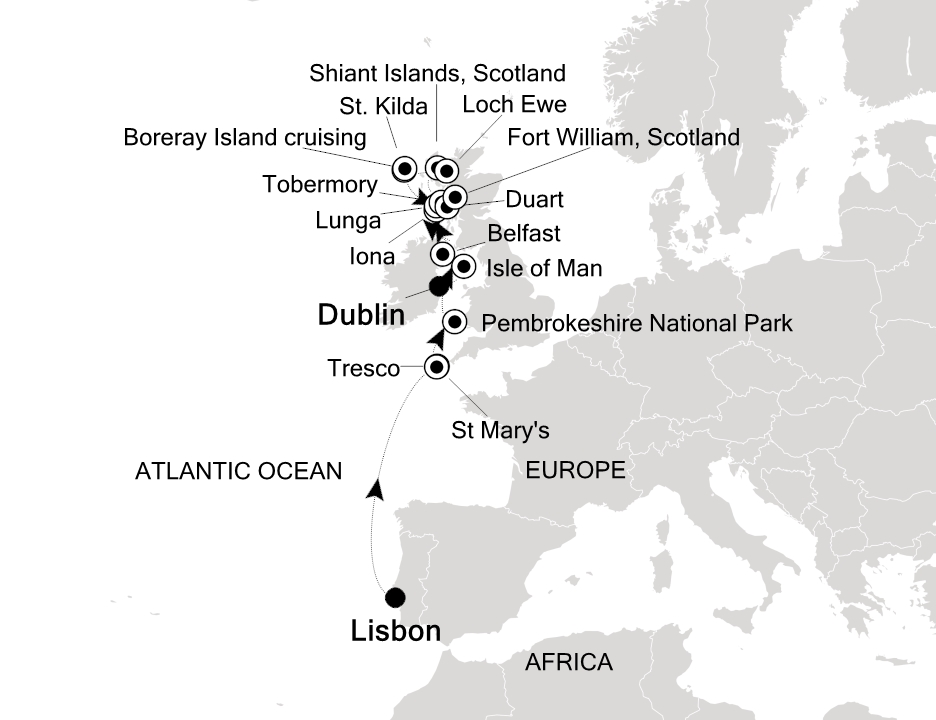 Silver EndeavourReiseverlauf abhängig von Wetter- und Eislage. Beschriebene Naturerlebnisse/Tiersichtungen sind mögliche Ereignisse auf den Expeditionen und nicht garantiert.