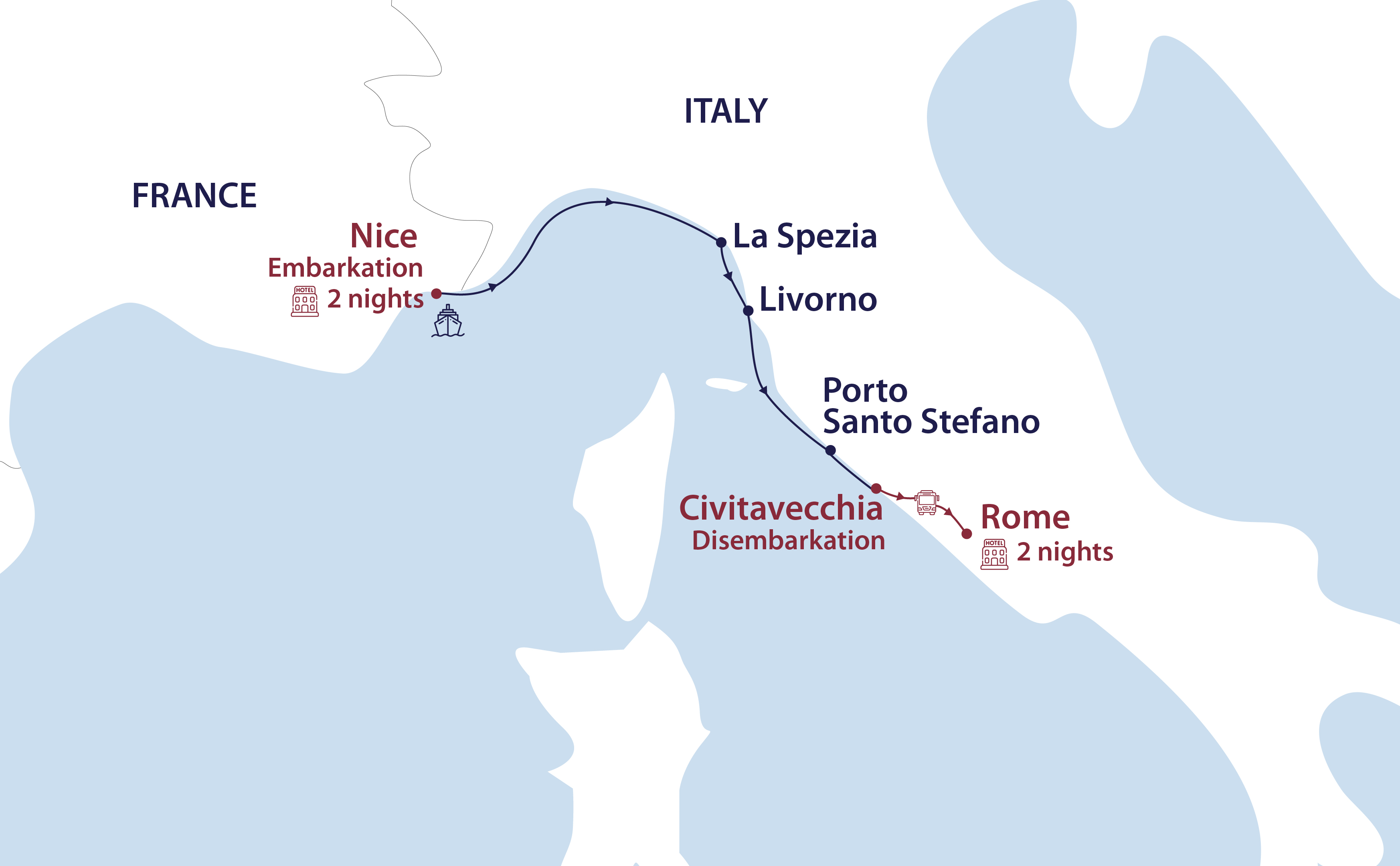 After breakfast onboard, we disembark and transfer to Rome for our two-night stay. On arrival in Rome, our first stop is the charming Roman suburb of Trastevere. Known for its narrow-cobbled streets, vibrant piazzas, and authentic Roman character, Trastevere offers a glimpse into local life, with medieval churches, artisan shops, and lively cafés tucked around every corner. After an introduction to Trastevere by your local guide, there is free time to try a Roman treat at a local trattoria, discover a hidden treasure or simply soak up the atmosphere of the popular part of Rome. In the early afternoon, we continue to the Vatican City for a guided visit to one of Christianity’s most iconic landmarks: St. Peter’s Basilica. Once the site of Emperor Nero’s brutal spectacles, the Vatican Hill was transformed into sacred ground by Constantine, Rome’s first Christian emperor, who declared it 'the hill of the martyrs.' Today, this sovereign city-state, which was granted independence from Italy in 1929, houses the heart of the Catholic Church. Towering above it all is St. Peter’s Basilica, the largest church in Christendom and a breathtaking example of Renaissance architecture. Designed in part by Michelangelo, who at age 72 created the majestic dome, the basilica rises above what is believed to be the tomb of St. Peter, the first apostle and first Pope. Admire Michelangelo’s moving Pietà, Bernini’s grand baldachin, and the sheer scale and spiritual gravitas of this revered site. *Note: As today is Sunday, the Vatican Museums are closed. Additionally, during Mass, access within St. Peter’s Basilica is restricted. For this reason, our visit to the Vatican is scheduled for the afternoon. Accommodation: Rome Hotel. Meals: Breakfast onboard.