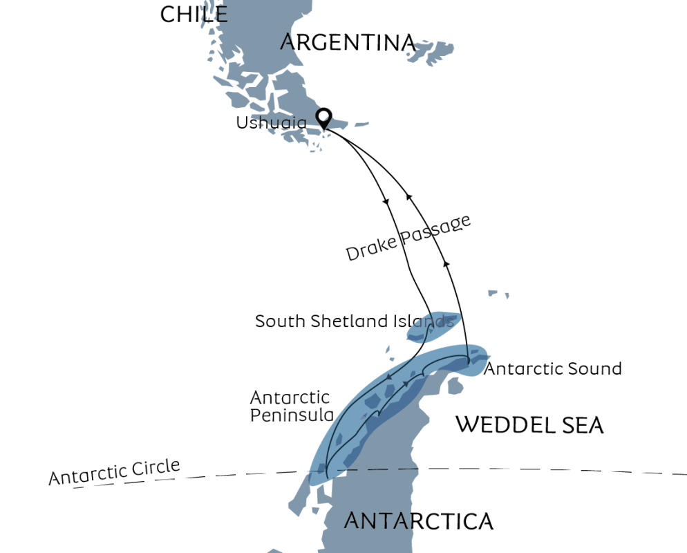 DIE ANTARKTISCHE HALBINSEL UND DER SÜDPOLARKREIS In den kommenden Tagen werden wir uns weiter westlich entlang der Antarktischen Halbinsel in die Region der Gerlache-Straße begeben. Diese eisige Weite erfordert eine sorgfältige Planung durch unseren Expeditionsleiter und Kapitän, der eine Route ausarbeiten wird, um eine Vielzahl von Orten zu erkunden, die die atemberaubende natürliche Schönheit der Region hervorheben.Die Gerlache-Straße, die aus dem „Rücken“ der Antarktischen Halbinsel und einer großen Anzahl von vergletscherten Gebirgsinseln besteht, bietet eine Fülle von ikonischen Antarktiserlebnissen. Von Zodiac-Kreuzfahrten in der Paradise Bay bis hin zu Pinguinen, die auf Cuverville Island nisten, verspricht jeder potenzielle Stopp beeindruckende Begegnungen. Erkunden Sie historische Hütten am Damoy Point, beobachten Sie Buckelwale in der Wilhelmina Bay und bestaunen Sie die atemberaubende Landschaft des Lemaire-Kanals. Wohin wir auf der Antarktischen Halbinsel auch gehen, überall gibt es endemische Wildtiere, eine spannende Geschichte und atemberaubende Naturschönheiten zu entdecken.Während unserer Zeit auf der Antarktischen Halbinsel werden wir uns auf der Suche nach dem südlichen Polarkreis nach Süden vorarbeiten. Der genaue Zeitpunkt der Überquerung des Polarkreises hängt von den Wind-, See- und Eisbedingungen ab und wird vom Kapitän und Expeditionsleiter festgelegt. Die Überquerung des südlichen Polarkreises, das ultimative Ziel auf der Wunschliste, ist jedoch das Hauptziel dieser aufregenden Expedition!Während unsere genauen Ziele von den Wetter- und Eisbedingungen abhängen, wird Ihr Expeditionsleiter dafür sorgen, dass die Gäste in den abendlichen Briefings über unsere Pläne informiert werden. In der sich ständig verändernden antarktischen Umwelt ist Flexibilität der Schlüssel, da wir unsere Pläne an die Bedingungen anpassen und gleichzeitig bereichernde Erlebnisse an Bord wie Vorträge, Rückblicke, Weinproben und Spa-Behandlungen anbieten.