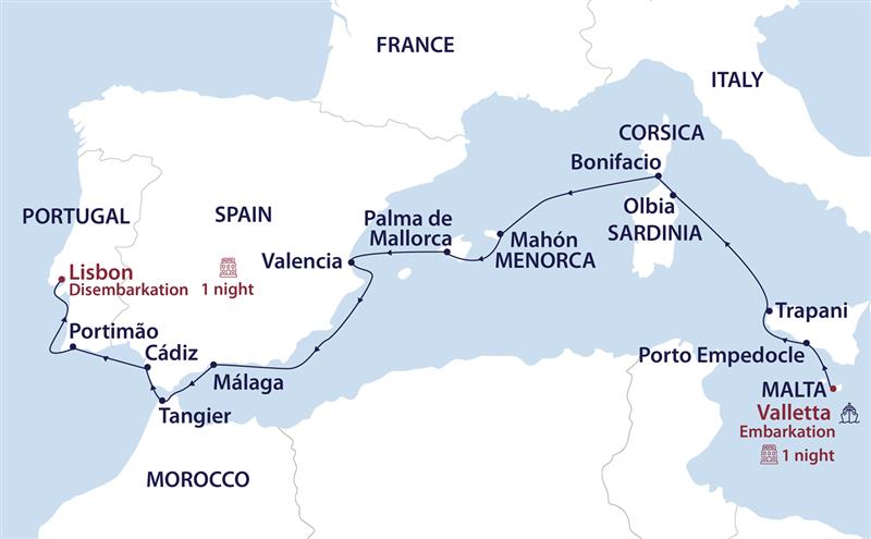 Welcome to Malta. On arrival at Valletta Airport make your way to the Arrivals Hall to meet our representative, followed by a transfer to our group hotel. At the hotel, visit our hospitality desk in the lobby to meet our team who will provide you with useful information regarding pre-embarkation procedures and about your time in Valletta. You will also receive cabin tags for your luggage. Please clearly label the tags with your name and your cabin number on the ship. Join us tonight for a Welcome Reception to begin our journey. Accommodation: Valletta Hotel. Meals: Breakfast, Welcome Reception (drinks and canapés). *Note: if you would like to attend our Welcome Reception, please ensure your flight lands in Malta prior to 2:00pm.