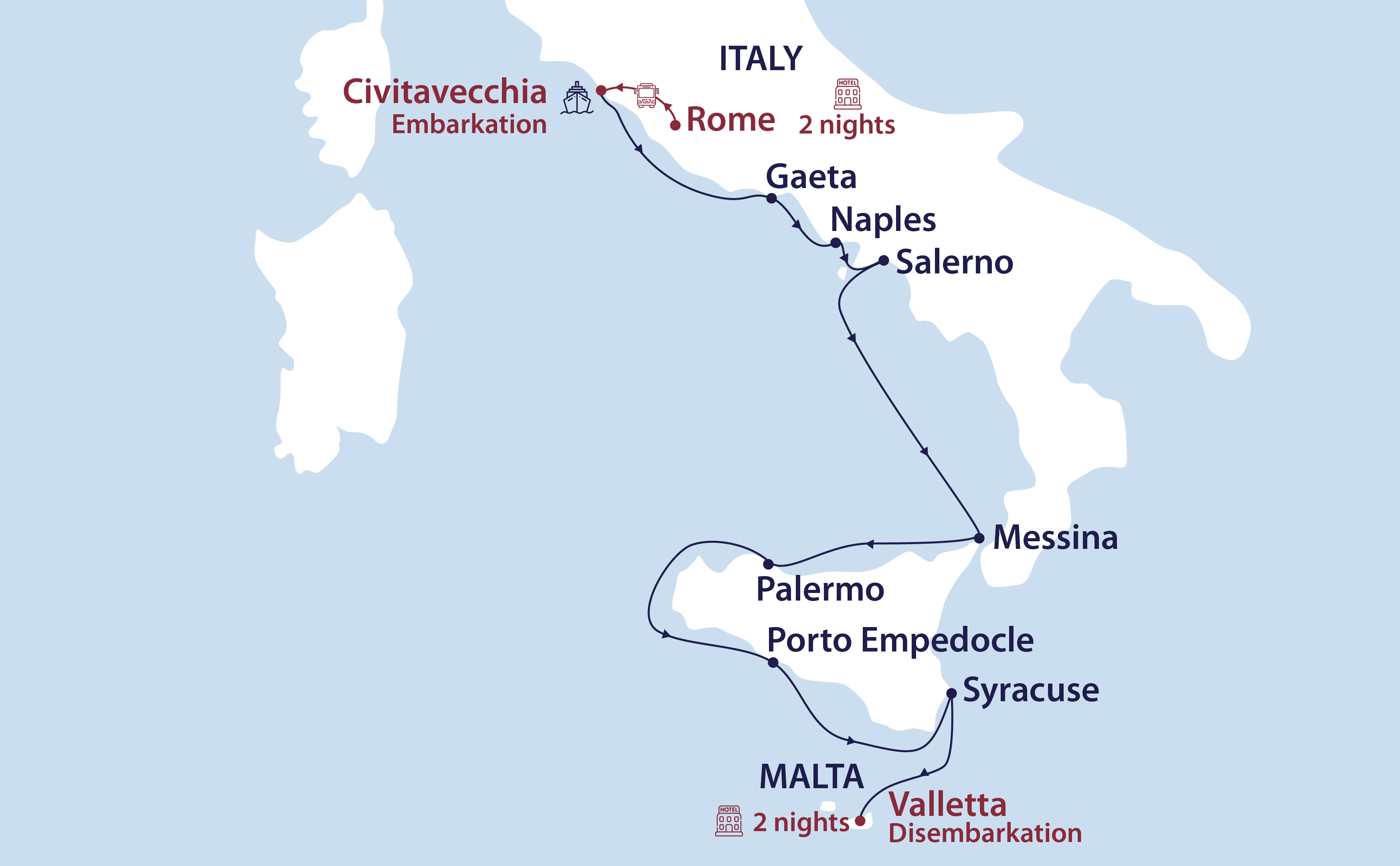 Two night’s hotel accommodation, including breakfast, in Valletta on Days 11 and 12
