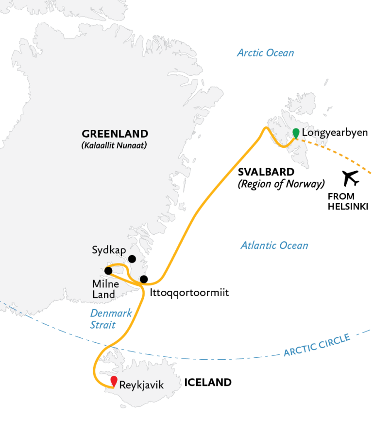 UltramarineReiseverlauf abhängig von Wetter- und Eislage. Beschriebene Naturerlebnisse/Tiersichtungen sind mögliche Ereignisse auf den Expeditionen und nicht garantiert.