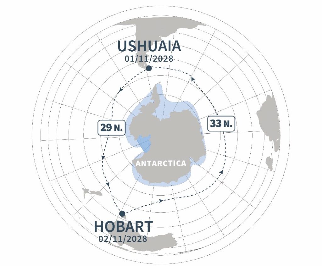 Die Expedition beginnt in Ushuaia, der südlichsten Stadt Argentiniens, und folgt einem Kurs, der in dieser Form noch nie einem touristischen Schiff gelungen ist.