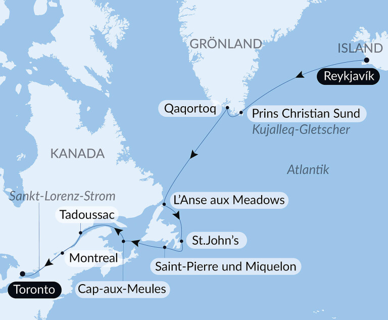 Erleben Sie mit PONANT eine unvergessliche 16-tägige Kreuzfahrt von Island bis Kanada, die Sie durch die majestätische Landschaft Grönlands führt. Beginnen Sie Ihr Abenteuer in Reykjavík, bevor Sie durch den atemberaubenden Prins Christian Sund segeln, wo spitze Berggipfel, Wasserfälle und Treibeis eine spektakuläre Kulisse bilden. Entdecken Sie das charmante Inuit-Dorf Augpilatok und seine farbenfrohen Häuser. Die Reise führt weiter nach Kanada, wo Sie in L'Anse aux Meadows, einer UNESCO-Welterbestätte und Wikinger-Fundstätte, anlegen. Erkunden Sie St. John’s, eine der ältesten englischsprachigen Städte Nordamerikas, und tauchen Sie in das französische Flair von Saint-Pierre und Miquelon ein. Beobachten Sie in Tadoussac Wale und genießen Sie die atemberaubende Natur des Sankt-Lorenz-Stroms. Ihre Reise endet in der dynamischen Stadt Toronto, nachdem Sie die einzigartige Mischung aus Kultur, Geschichte und natürlicher Schönheit erlebt haben.