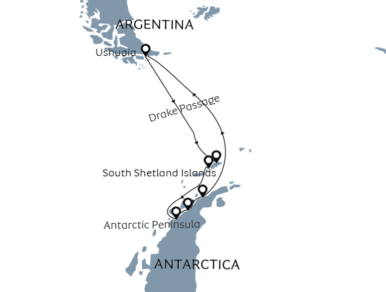 Von Ushuaia in Argentinien aus durchqueren Sie die mächtige Drake-Passage auf dem Weg zu den südlichen Shetland-Inseln und landen mit dem Zodiac an Pinguin-Kolonien, Forschungsstationen und faszinierenden Aussichtspunkten. Weiter südwärts, tief in die Buchten der Antarktis hinein, passieren Sie die berühmte Gerlache-Straße, wo 900 Meter hohe Eisklippen direkt aus dem stillen Wasser ragen. Auf keiner anderen Reise können Sie so viel unberührte Natur und vielfältige Tierwelt in so wenigen Tagen erleben!