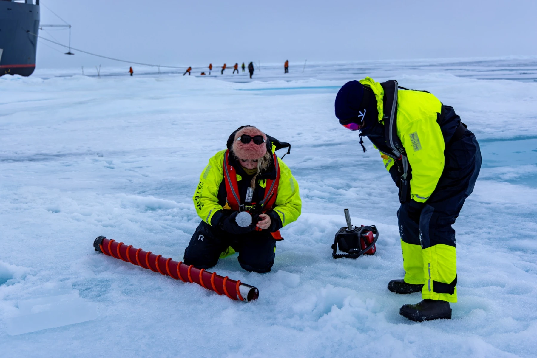 Laura Wolpmann gibt spannende Einblicke in die laufenden Forschungsprojekte an Bord – darunter die Messung der Eisdicke, die Platzierung einer Schneeboje und die Bedeutung dieser Daten für die internationale Klimaforschung.
