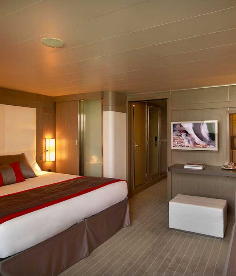 Der Luxus und das einzigartige französische Flair des sportlichen Schiffes setzen sich in den Kabinen fort. Die charmante Yacht ist für bis zu 264 Gästen in 132 Kabinen ausgerichtet. Ein privater Balkon von jeder Außenkabine erlaubt einen Blick auf die Eisberge und Gletscher, ohne an Deck zu gehen. Der Komfort der Kabinen ist ein herausragendes Merkmal der Le Boréal. Sie haben eine Größe von 20 bis 45 Quadratmeter mit einer absoluten Luxusausstattung.