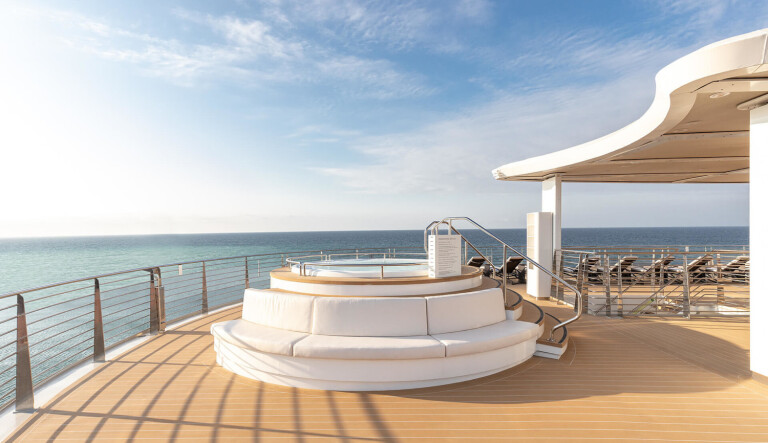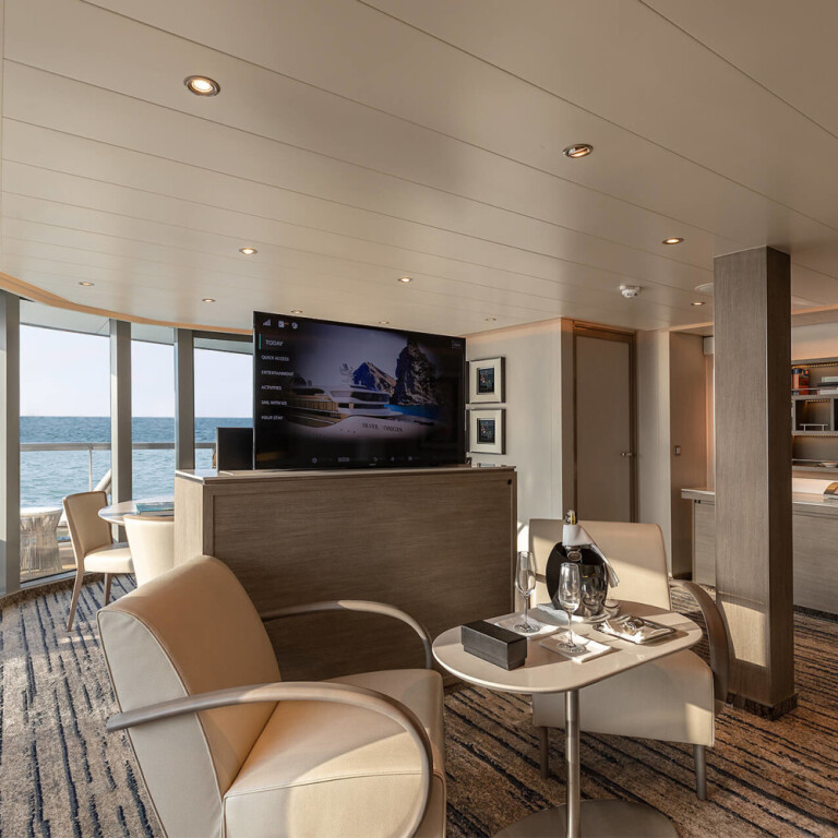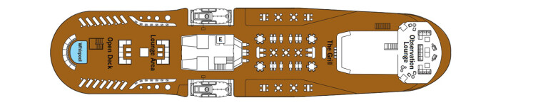 Die Silver Origin verfügt über eine wunderschöne Beobachtungslounge im vorderen Teil des Schiffes, oberhalb der Brücke, die eine unvergleichliche Aussicht in luxuriösem Komfort bietet, während Sonnenanbeter sich auf dem Sonnendeck ausstrecken können, das sowohl offene als auch schattige Bereiche sowie einen Whirlpool bietet.